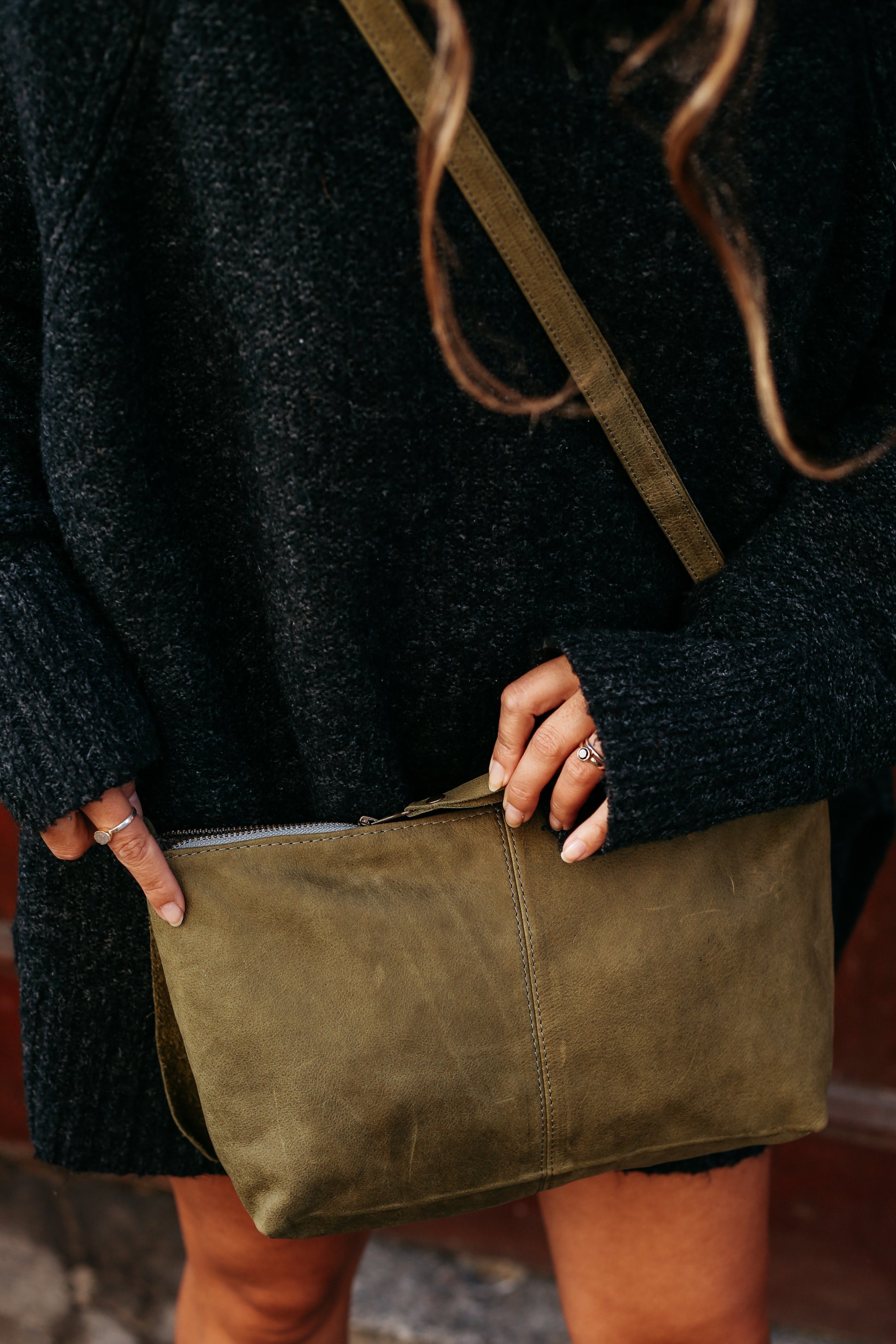 A zip closure on the main bag and on the back , internal zip pocket and sleeve pocket inside.