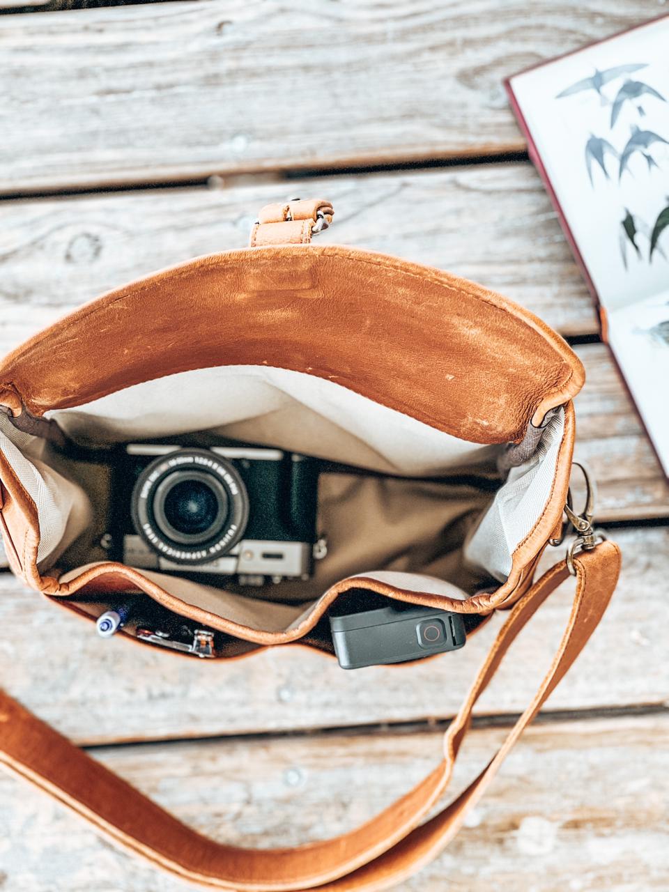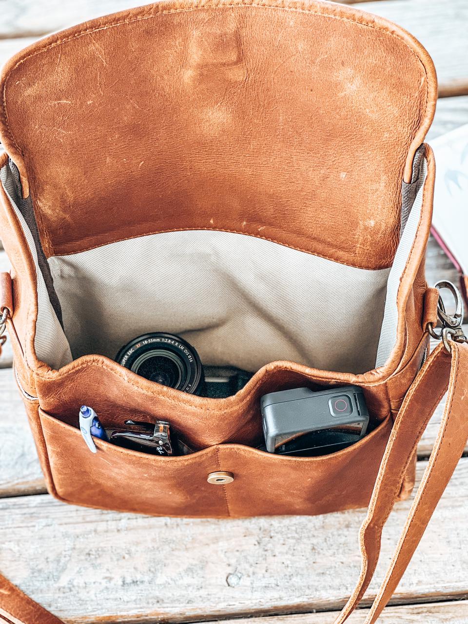 To help store your lenses you can add the camera insert that fits inside the bag, comes with Velcro dividers so you can move them around to fit whatever space you need.